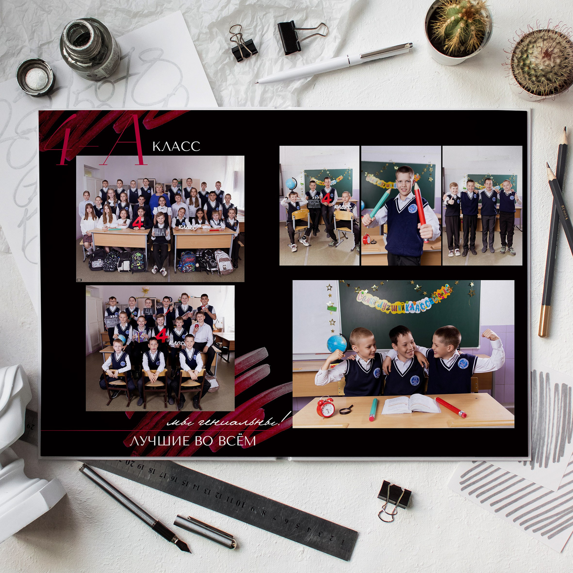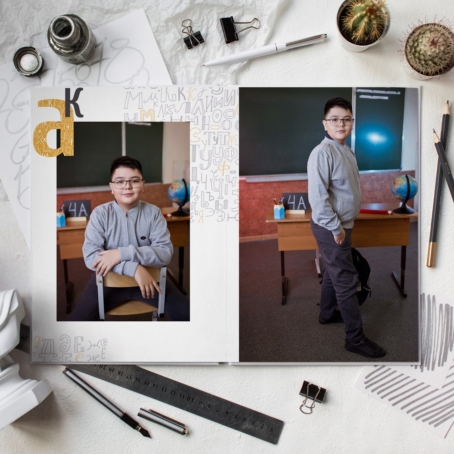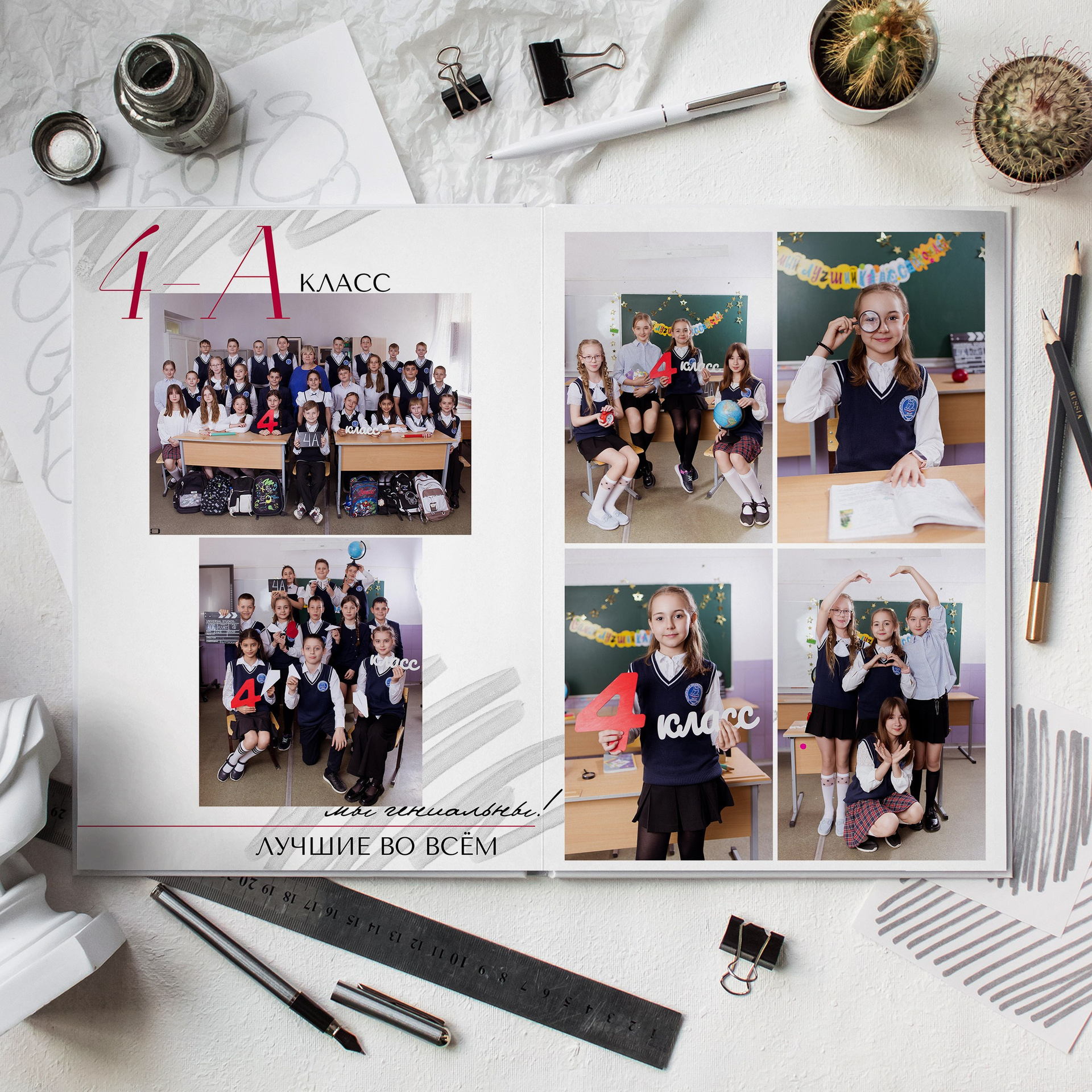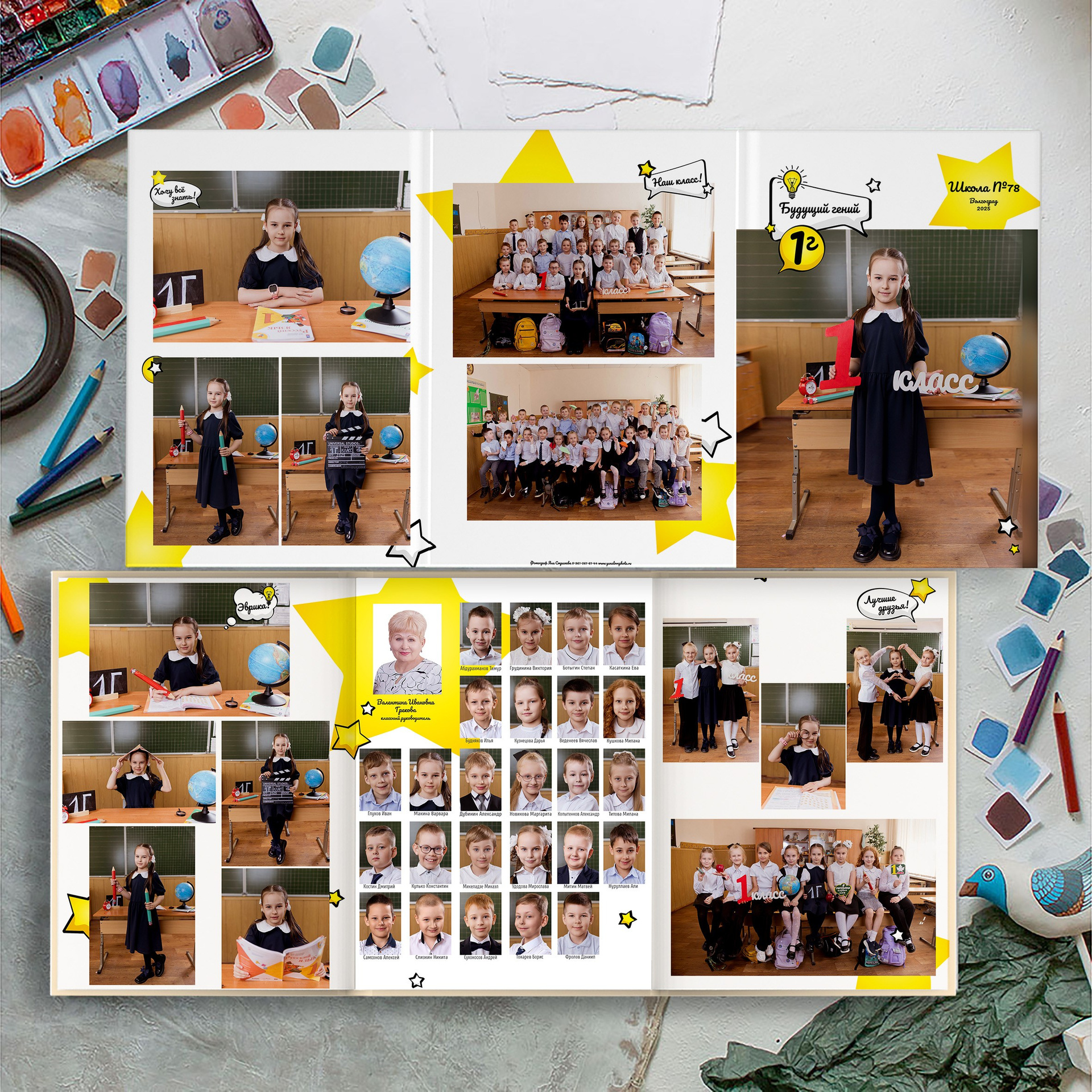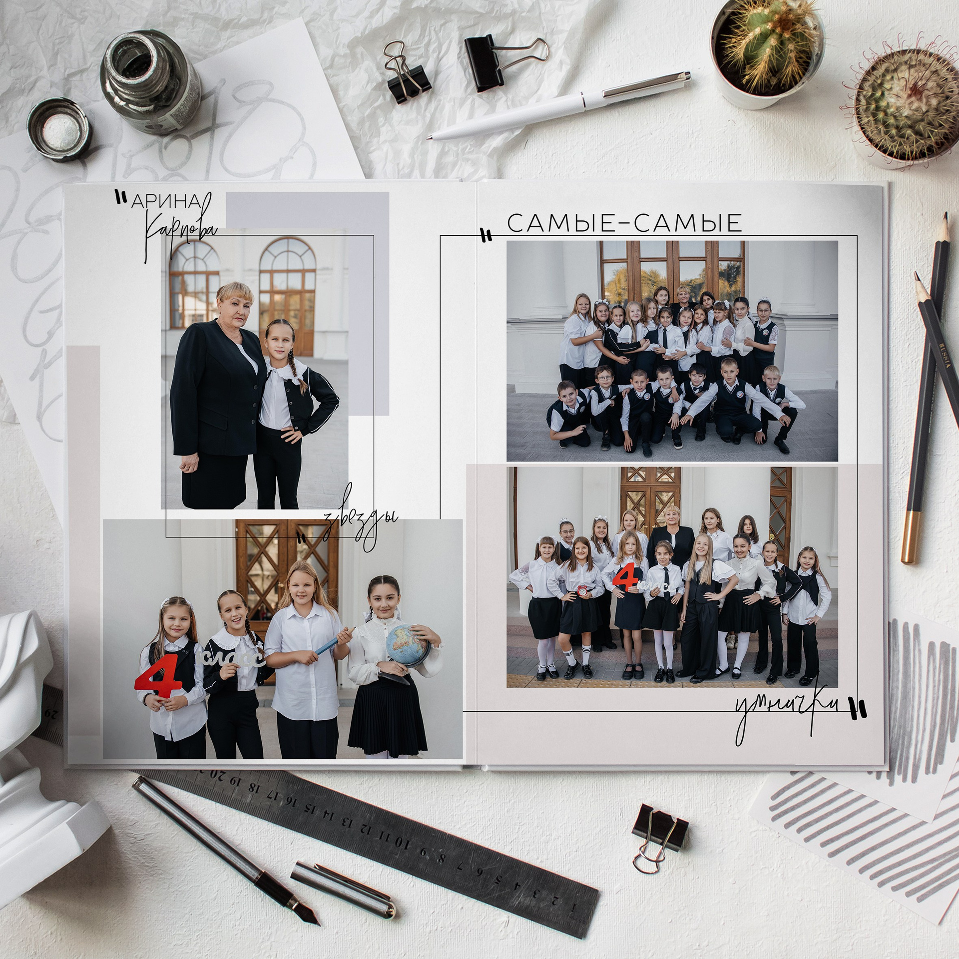 У вас не будет одинаковых по содержанию альбомов, так как каждый макет будет собираться на основе выбранных вами фотографий. Вы решаете, сколько будет разворотов, портретов или фотографий с друзьями и одноклассниками/одногруппниками.