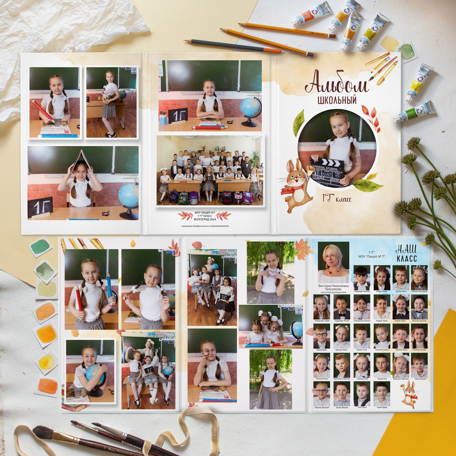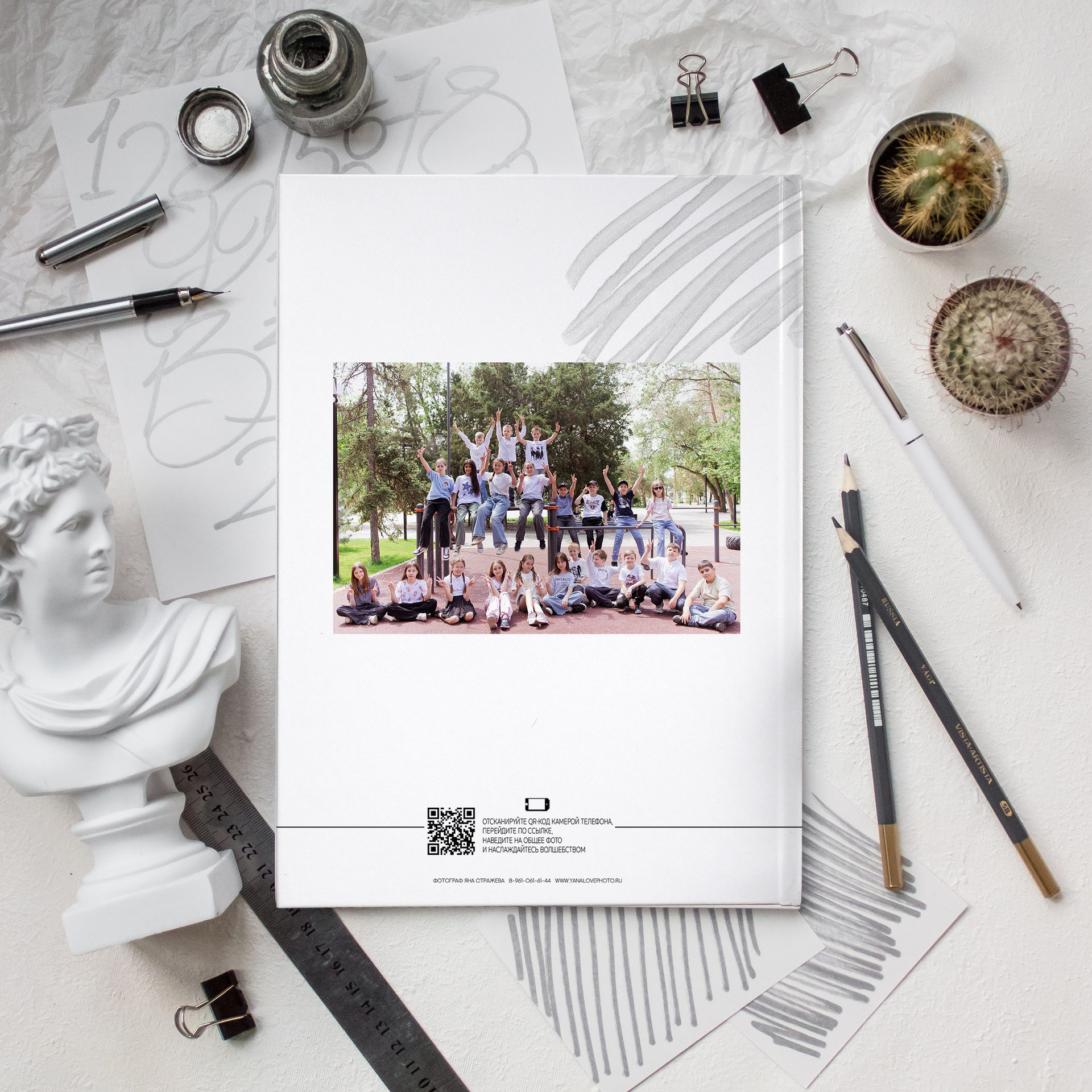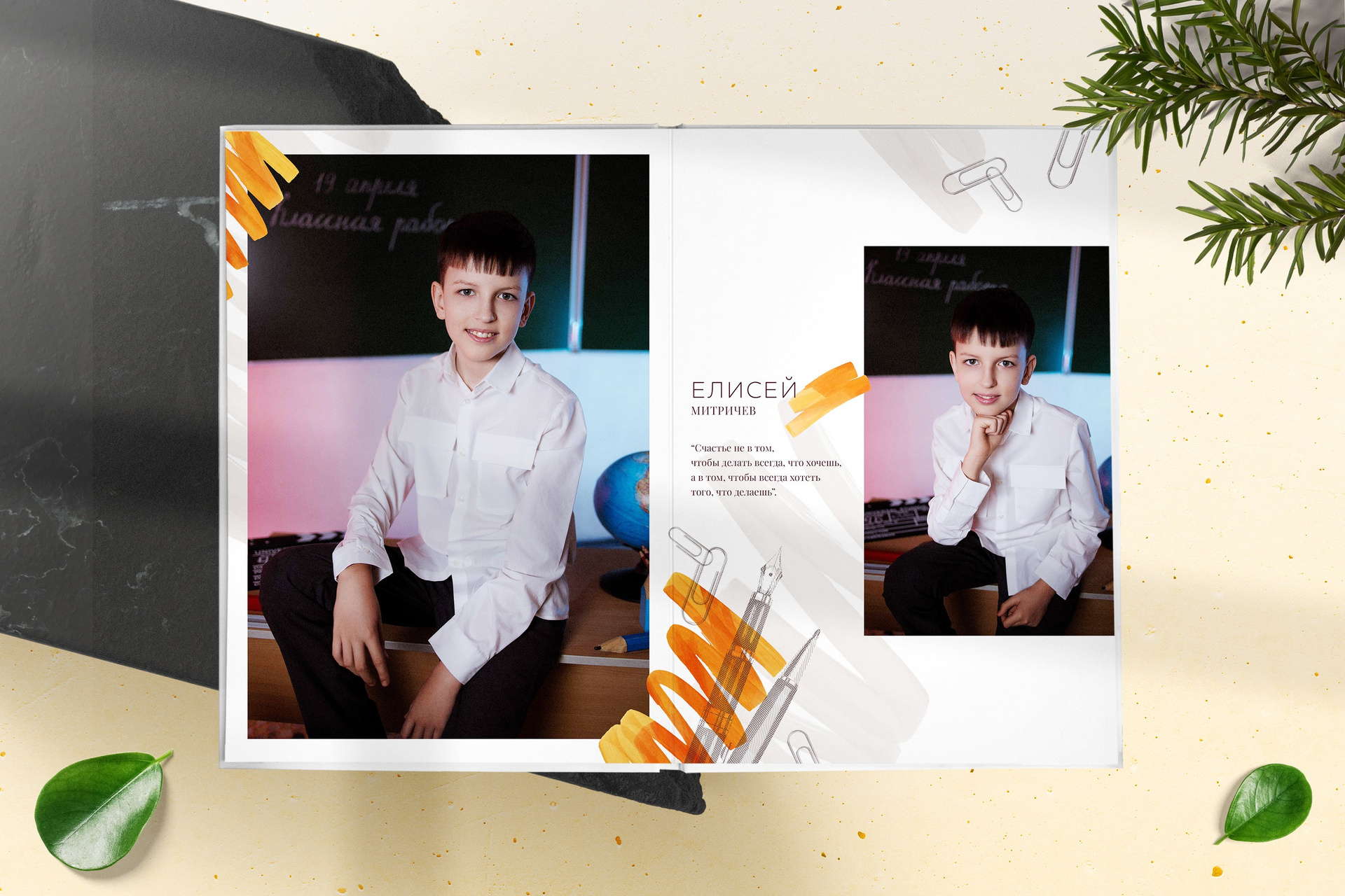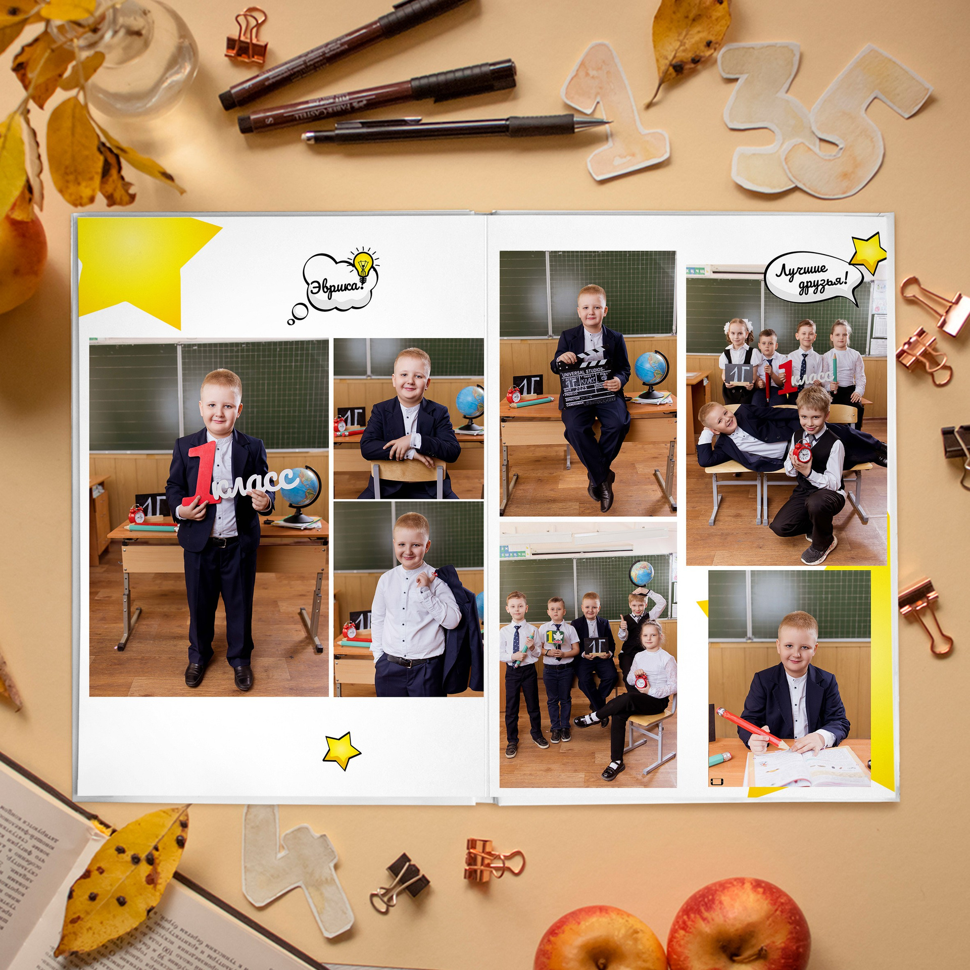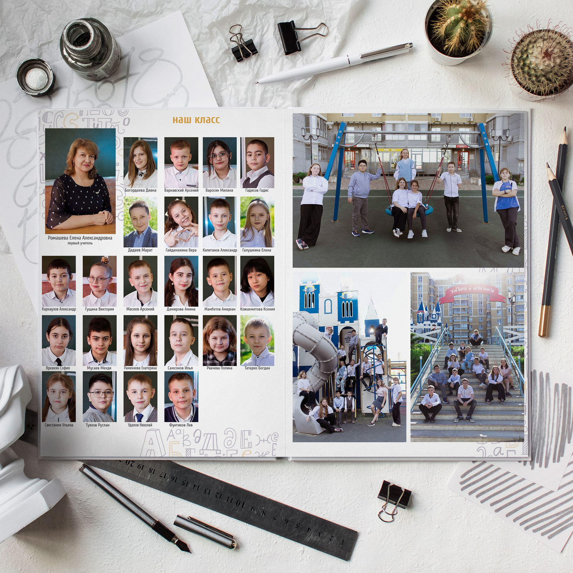 У вас не будет одинаковых по содержанию альбомов, так как каждый макет будет собираться на основе выбранных вами фотографий. Вы решаете, сколько будет разворотов, портретов или фотографий с друзьями и одноклассниками/одногруппниками.