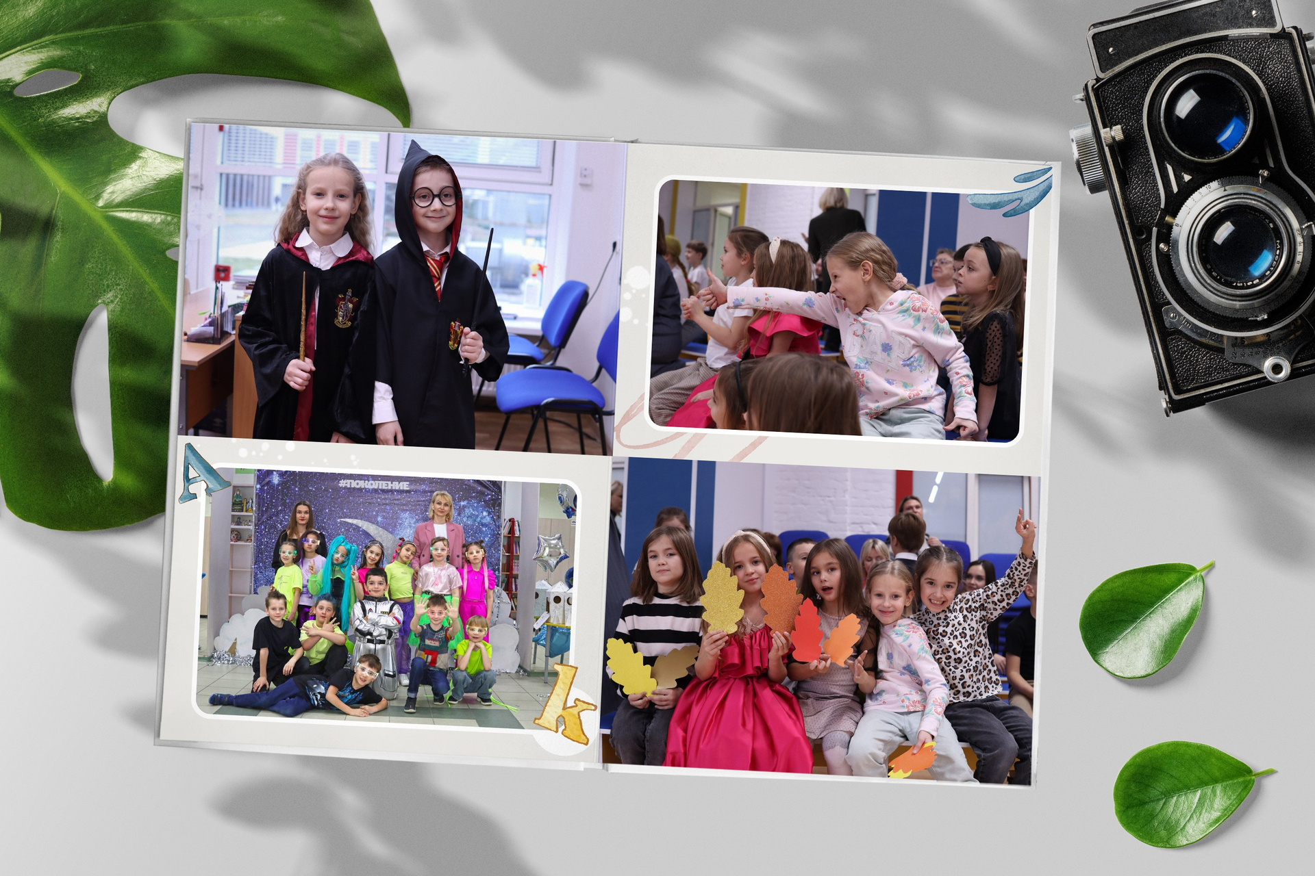 - 1 разворот — виньетки (портреты всех детей с подписью фамилий и имён)